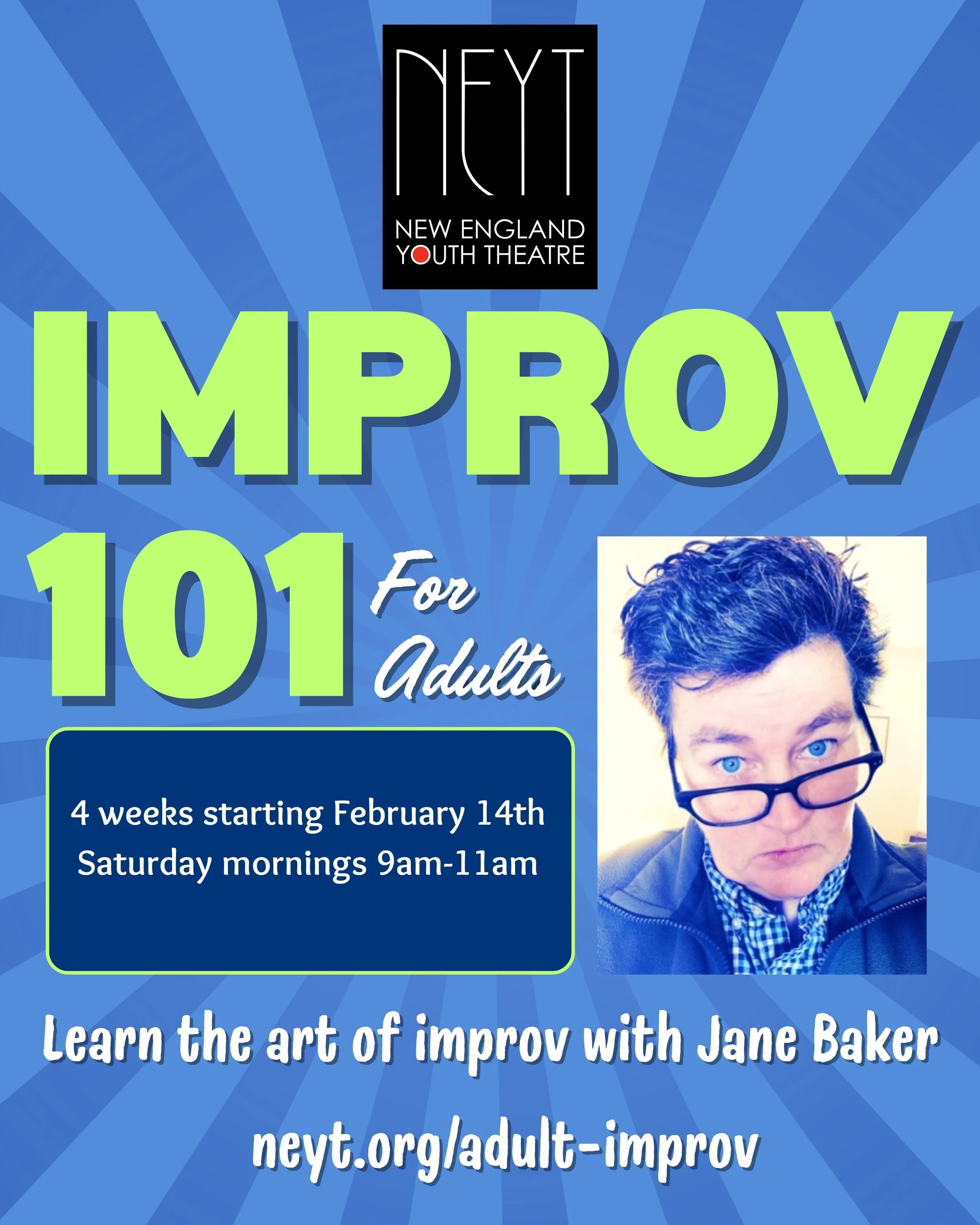 Have you already taken Adult Improv at NEYT? Ready to step up your game? Or just want to repeat the fun? Then Improv for Adults 201 is for you!