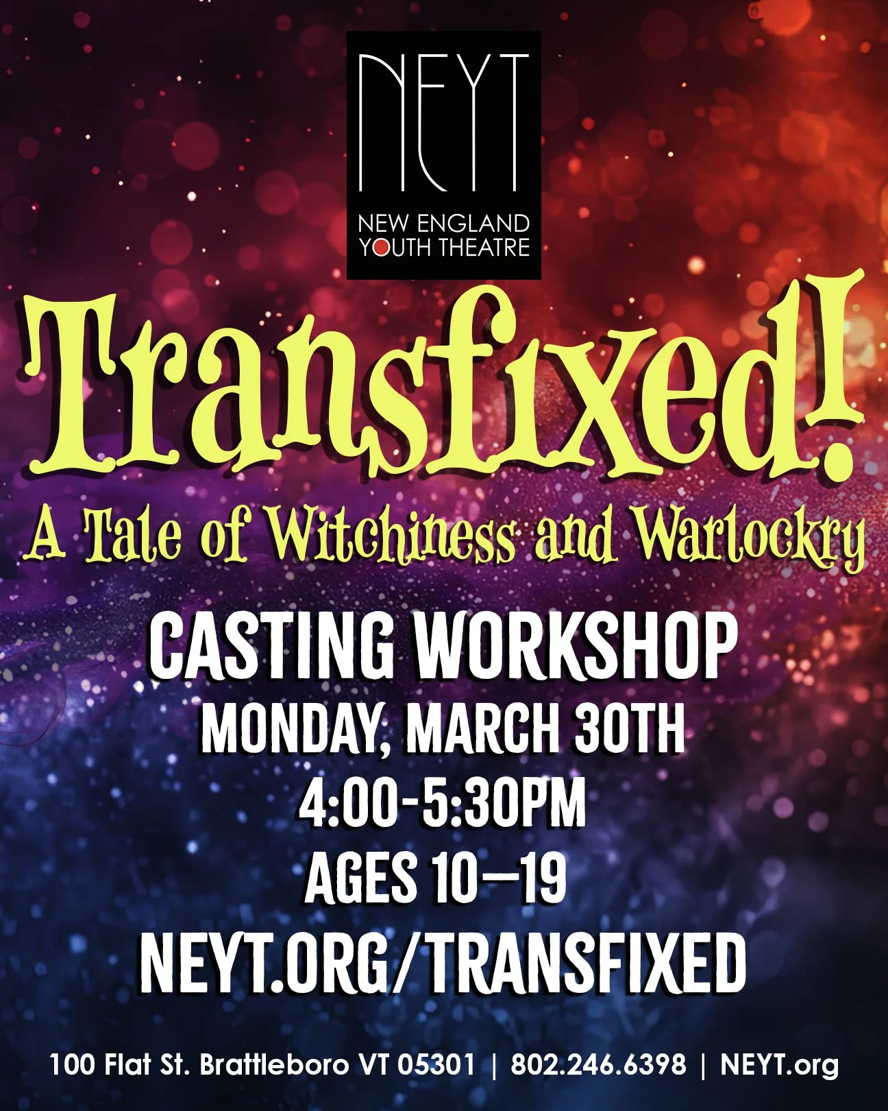 This theatrical extravaganza will include dance, drag, clown, puppetry, mask work, comedic dialogue, melodrama, circus arts and more. We welcome multidisciplinary artists and writers/performers ages 10-19 to bring their magic to the Tranfixed! ensemble.